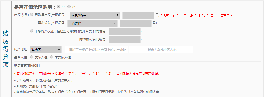 如果在海滄區(qū)有購(gòu)房,選擇“是”,并根據(jù)房產(chǎn)情況認(rèn)真填寫相對(duì)應(yīng)的房產(chǎn)信息,系統(tǒng)會(huì)根據(jù)所填寫的信息進(jìn)行審核加分。