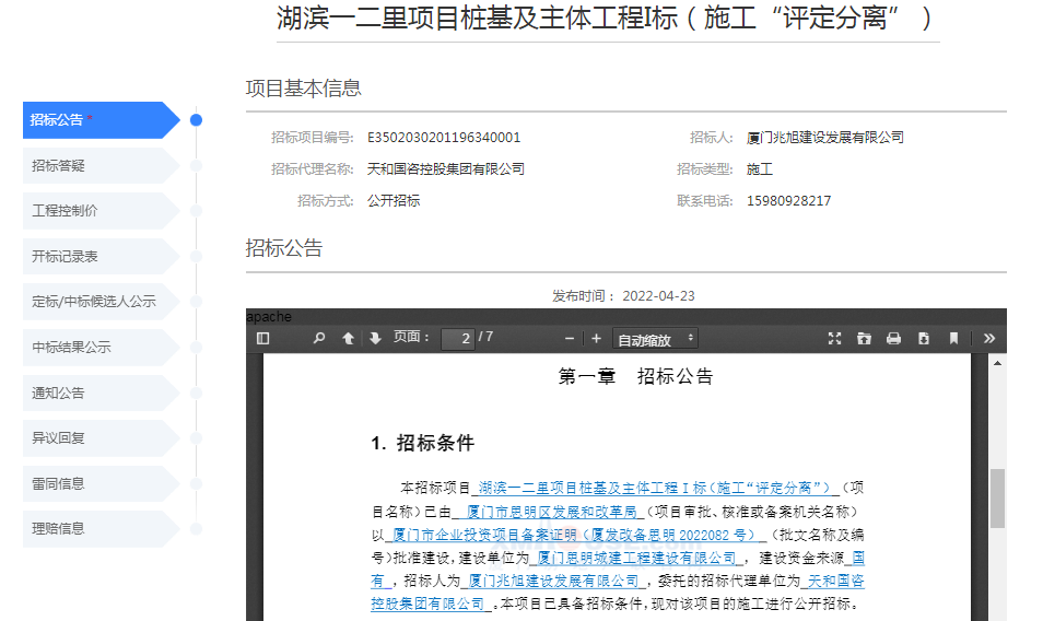 湖濱一二里項(xiàng)目樁基及主體工程I標(biāo)(施工“評(píng)定分離”)