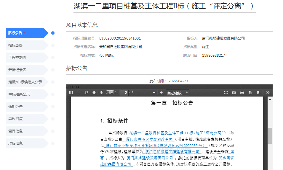 湖濱一二里項(xiàng)目樁基及主體工程II標(biāo)(施工“評(píng)定分離”)