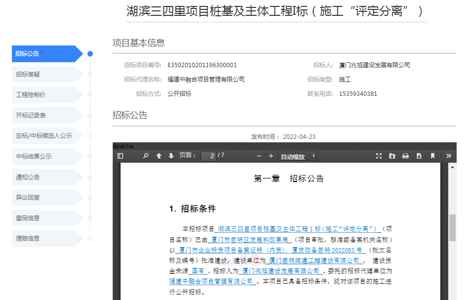 湖濱三四里項(xiàng)目樁基及主體工程I標(biāo)(施工“評(píng)定分離”)
