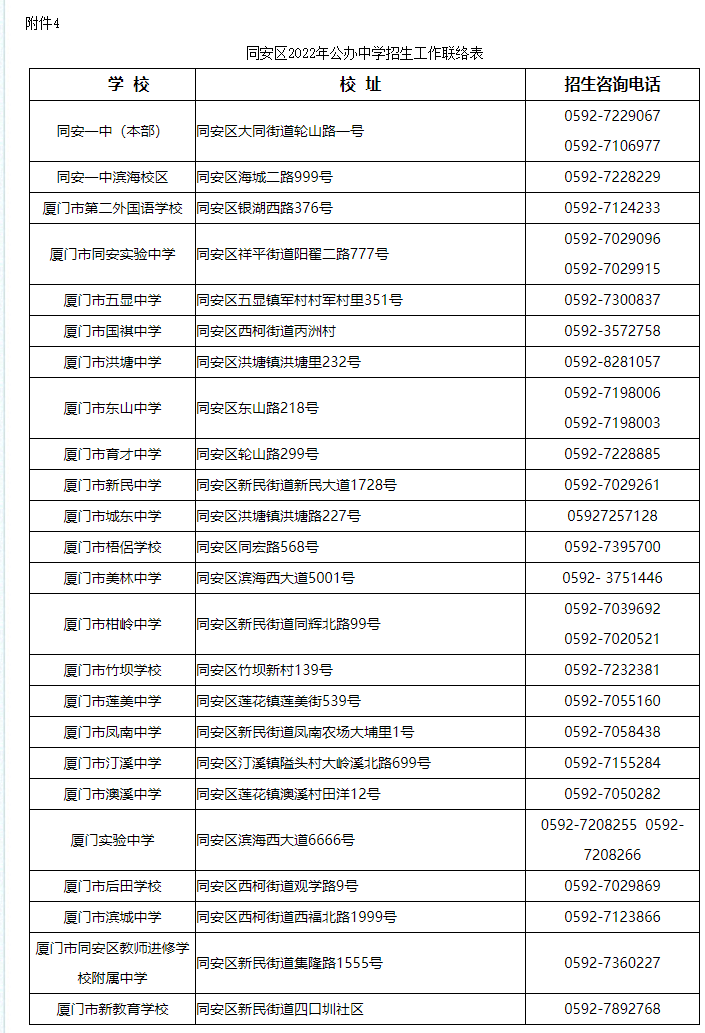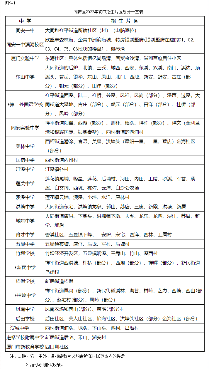 同安區(qū)2022年小學(xué)畢業(yè)和初中招生工作意見(節(jié)選)