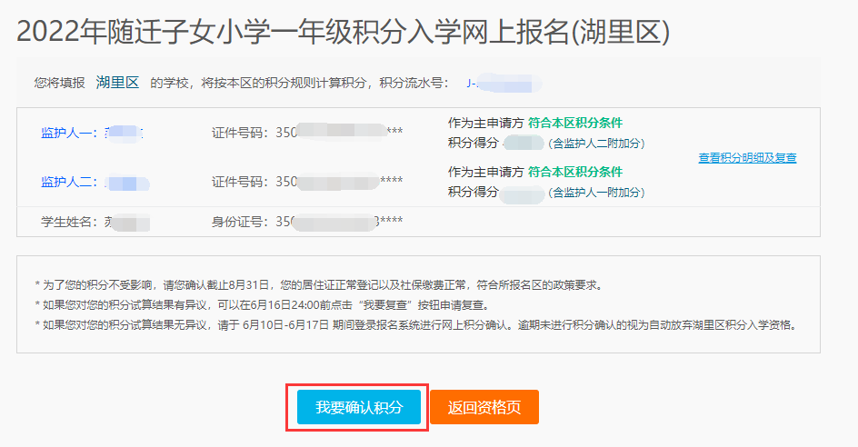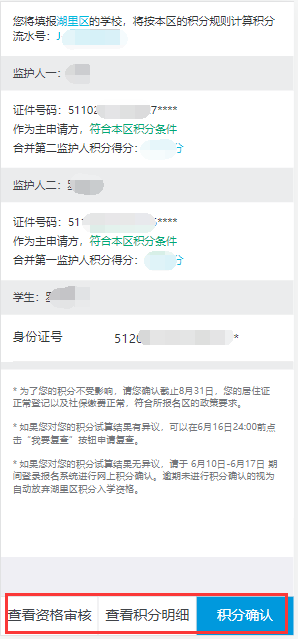 2、請(qǐng)務(wù)必在6月10日-6月17日點(diǎn)擊屏幕下方的 “積分確認(rèn)”按鈕確認(rèn)積分。逾期未進(jìn)行積分確認(rèn)的視為自動(dòng)放棄湖里區(qū)積分入學(xué)資格。