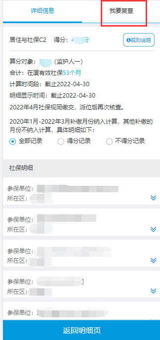 1、 查看積分明細(xì)后,如果對(duì)自己的積分有異議,可以在6月10日-6月16日期間點(diǎn)擊有異議積分項(xiàng)明細(xì)界面右上角“我要復(fù)查”按鈕,填寫(xiě)復(fù)查原因后,等待工作人員再次審核該積分項(xiàng)。(請(qǐng)申請(qǐng)人不要急著點(diǎn)擊復(fù)查按鈕,先對(duì)照積分計(jì)算方法認(rèn)真核查自己的積分,確實(shí)有問(wèn)題再點(diǎn)擊復(fù)查按鈕,如果您點(diǎn)了復(fù)查,系統(tǒng)也無(wú)法馬上幫您復(fù)查,需要一定的時(shí)間來(lái)匹配數(shù)據(jù),請(qǐng)耐心等待。)
