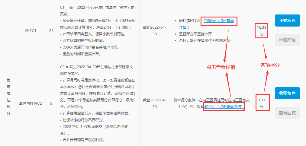 1. 查看積分明細(xì)后,如果對(duì)自己的積分有異議,可以在6月10日-6月16日期間點(diǎn)擊有異議積分項(xiàng)右側(cè)“我要復(fù)查”的按鈕,填寫(xiě)復(fù)查原因后,等待工作人員再次審核該積分項(xiàng)。(請(qǐng)申請(qǐng)人不要急著點(diǎn)擊復(fù)查按鈕,先對(duì)照積分計(jì)算方法認(rèn)真核查自己的積分,確實(shí)有問(wèn)題再點(diǎn)擊復(fù)查按鈕,如果您點(diǎn)了復(fù)查,系統(tǒng)也無(wú)法馬上幫您復(fù)查,需要一定的時(shí)間來(lái)匹配數(shù)據(jù),請(qǐng)耐心等待。)