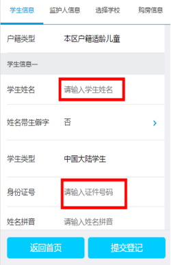 進(jìn)入主登記界面可以看到信息登記分為四部分,分別是:學(xué)生信息、監(jiān)護(hù)人信息、選擇學(xué)校、購(gòu)房信息。需要逐項(xiàng)填寫(xiě)信息。