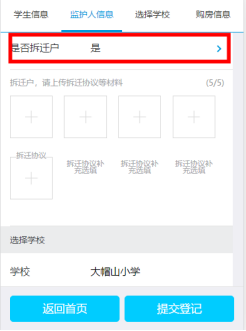 5.戶口類(lèi)型:如果是拆遷戶,在是否拆遷戶選擇“是”上傳對(duì)應(yīng)的材料,家長(zhǎng)到戶籍所在地鎮(zhèn)(街)申請(qǐng),填寫(xiě)就學(xué)志愿,后由鎮(zhèn)街審核蓋章確認(rèn)后匯總提交至翔安區(qū)教育局接受統(tǒng)籌安排入學(xué)。(鎮(zhèn)街材料提交時(shí)間截止至6月21日)。