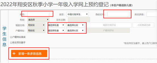 3.如果是多胞胎,點(diǎn)擊“新增學(xué)生”,正常填寫(xiě)信息即可。