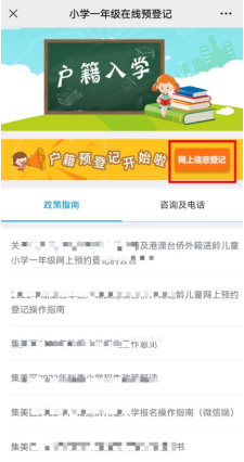 1.3在首頁(yè)找到“i教育”,點(diǎn)擊進(jìn)入后選擇“戶籍小學(xué)預(yù)登記”網(wǎng)上預(yù)約登記界面。