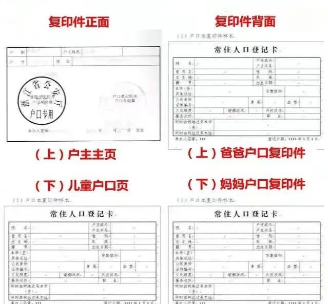 ?、賾艏C明,指適齡兒童與父親(母親)同一戶籍的本市居民戶口簿原件,學(xué)生本人頁、戶口本首頁、父母戶口本頁復(fù)印件;