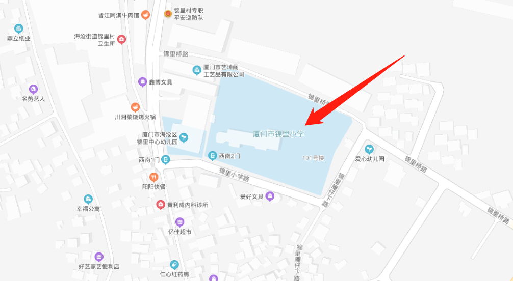 廈門市錦里小學(xué)位于海滄區(qū)海滄鎮(zhèn)青礁村大路社82號(hào),根據(jù)廈門市教育局發(fā)布的海滄區(qū)初中劃片招生一覽表和海滄區(qū)秋季海滄區(qū)戶籍小學(xué)片區(qū)招生對(duì)象招生劃片范圍一覽表,廈門市錦里小學(xué)劃片招生地段和所屬社區(qū)如下: