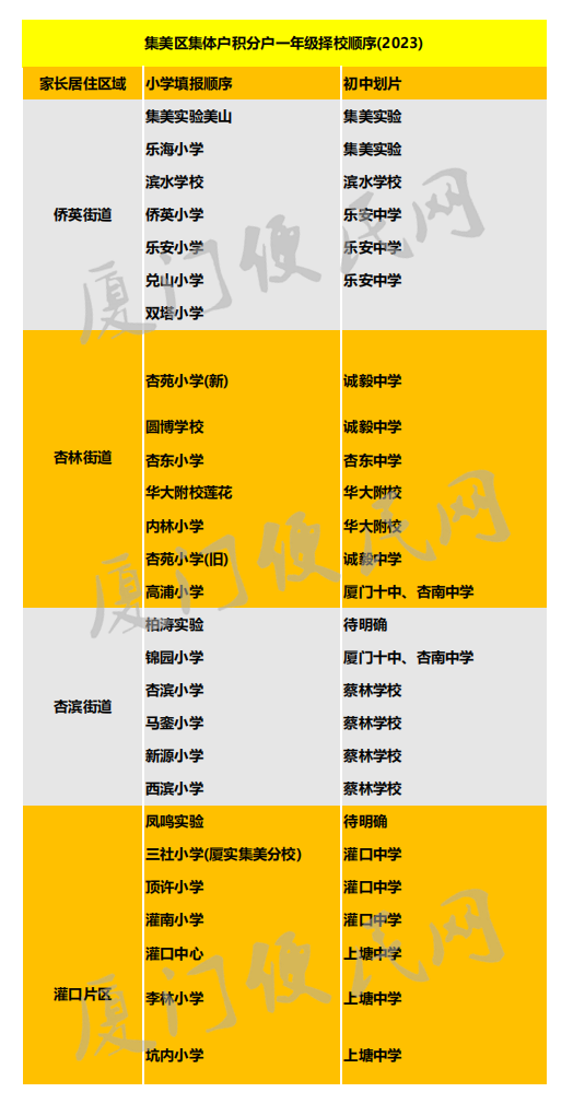 【積分】:廈門積分入學細則 | 【劃片】:小學劃片+對應初中 | |