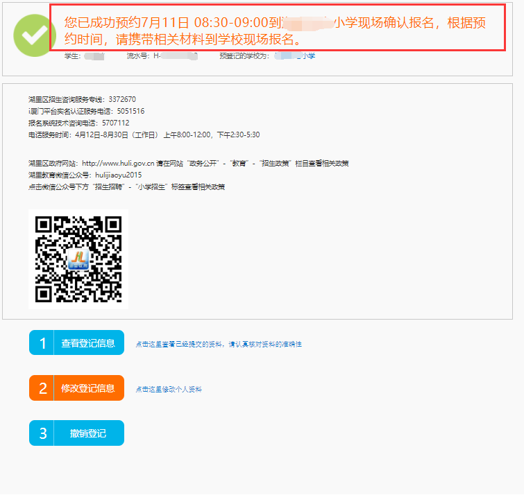 提交報(bào)名后,如果發(fā)現(xiàn)信息填寫錯(cuò)誤可以點(diǎn)擊“修改登記信息”修改信息。如果要撤銷報(bào)名,點(diǎn)擊“撤銷登記”撤銷湖里區(qū)戶籍報(bào)名預(yù)約登記。