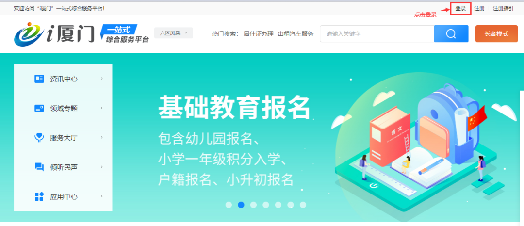 首頁點(diǎn)擊“基礎(chǔ)教育報(bào)名”板塊進(jìn)入