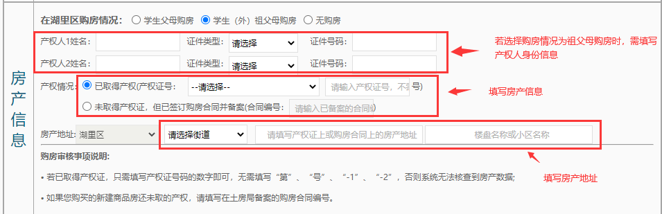 ?根據(jù)產(chǎn)權(quán)所屬情況選擇“學(xué)生父母購房”、“學(xué)生(外)祖父母購房”或是“無購房”。