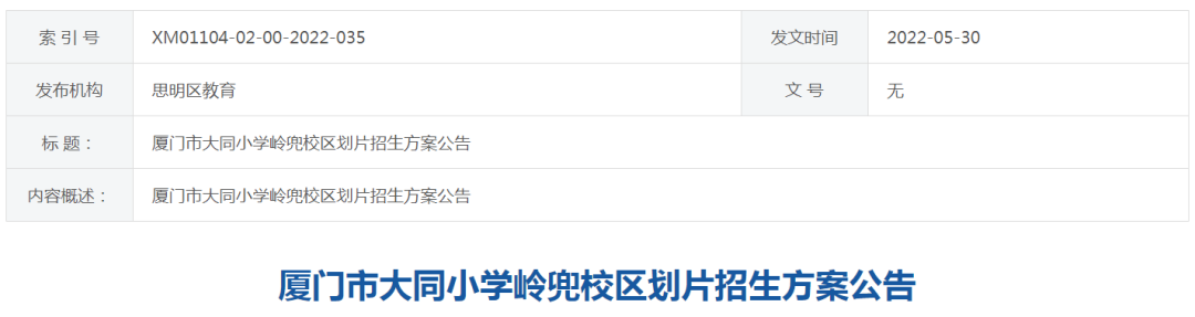 如果《2022廈門市大同小學(xué)嶺兜校區(qū)招生劃片一覽表》找不到你想要的內(nèi)容,可以嘗試: