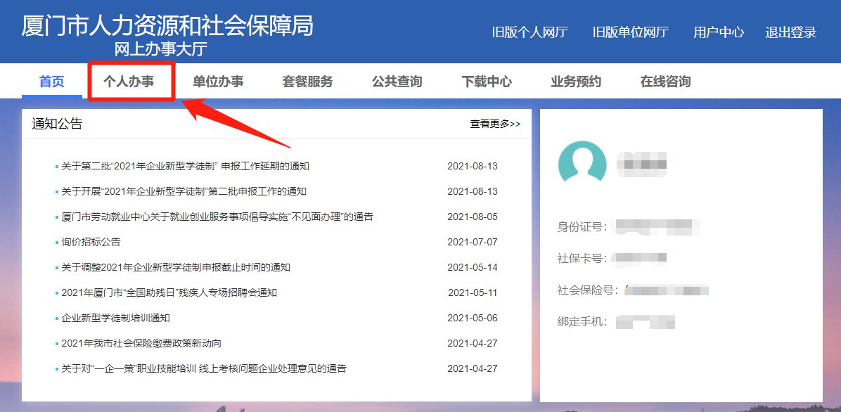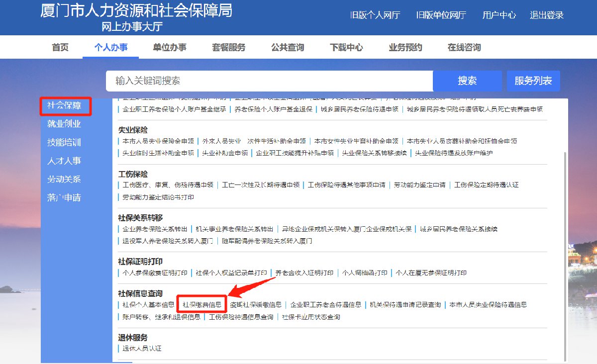 登錄廈門市人力資源和社會(huì)保障局官方網(wǎng)站,選擇“網(wǎng)上辦事”中的“網(wǎng)上辦事大廳”,填寫賬號(hào)和密碼,登錄后選擇個(gè)人辦事欄目中的“社保信息查詢”中的“社保繳費(fèi)信息”,即可查詢個(gè)人城鄉(xiāng)醫(yī)保繳費(fèi)情況。具體操作步驟如下: