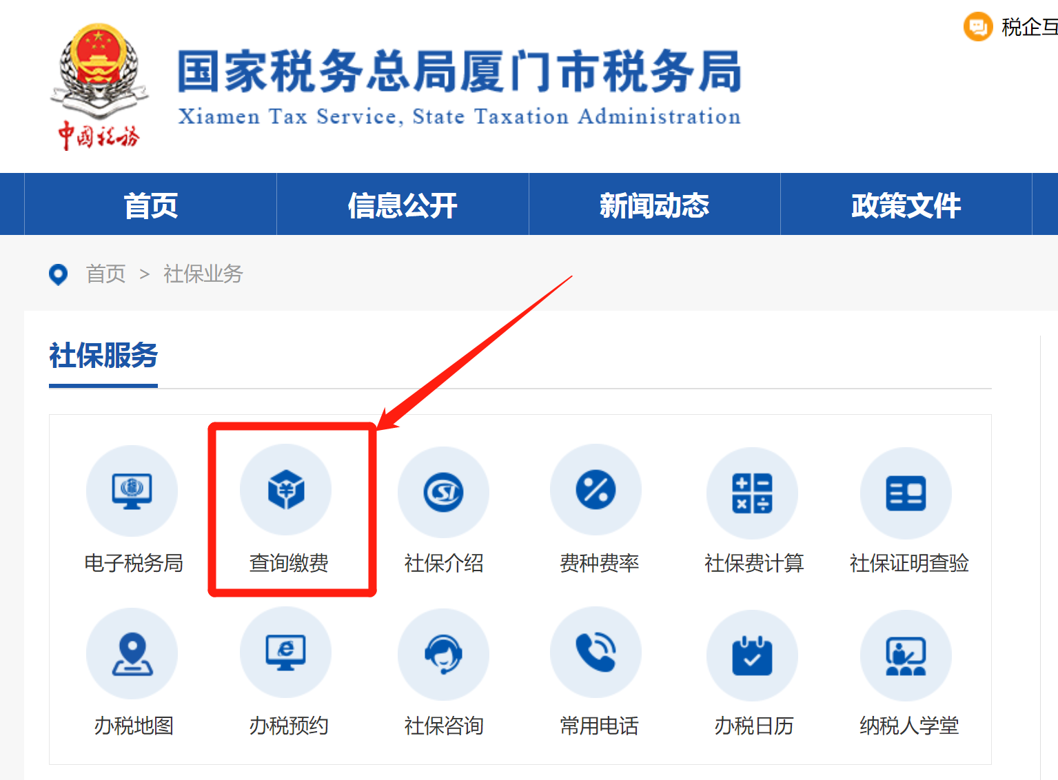 一、登錄廈門市稅務(wù)局網(wǎng)站的“社保服務(wù)”→“查詢繳費(fèi)”進(jìn)行查詢。