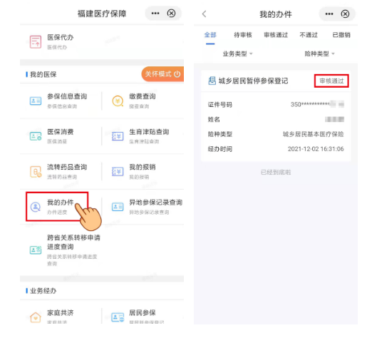 3.在我的醫(yī)保欄目點(diǎn)擊【我的辦件】,查看業(yè)務(wù)辦理進(jìn)度。