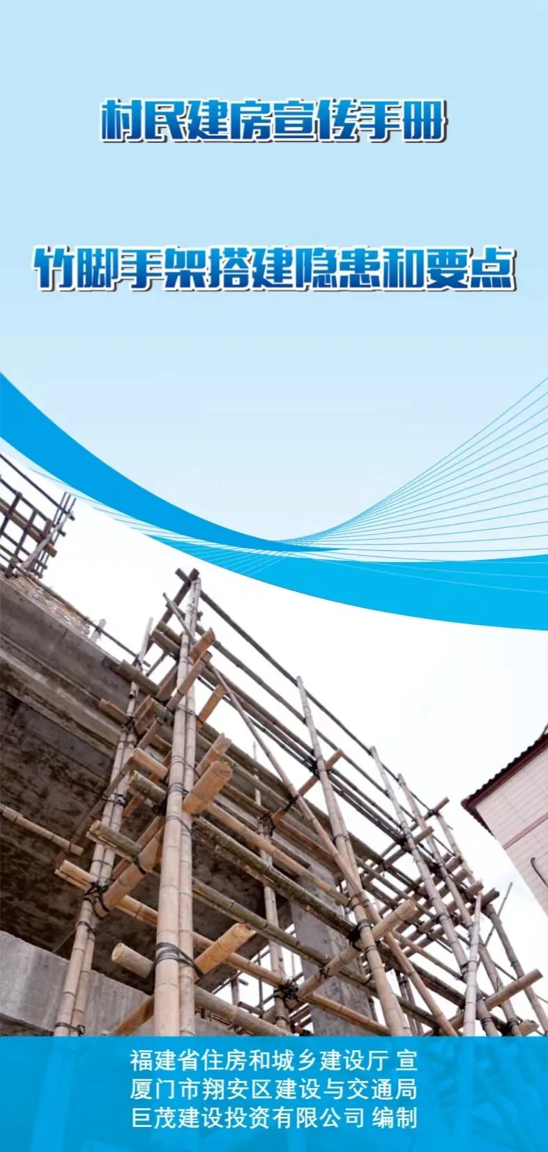 日前,福建省住建廳組織廈門市翔安區(qū)建設(shè)與交通局、巨茂建設(shè)投資有限公司編制了《農(nóng)村竹腳手架搭建常見(jiàn)隱患和要點(diǎn)一張圖》(以下簡(jiǎn)稱一張圖),現(xiàn)予印發(fā)。請(qǐng)相關(guān)單位抓好宣貫工作,迅速印發(fā)縣(鎮(zhèn)、村),督促縣鄉(xiāng)將一張圖納入工匠、鎮(zhèn)(村)干部輪訓(xùn)課程和農(nóng)房建設(shè)審批前的安全宣講內(nèi)容,并在施工現(xiàn)場(chǎng)進(jìn)行張貼,逐步提升基層干部群眾質(zhì)量安全常識(shí)和工匠操作水平。
