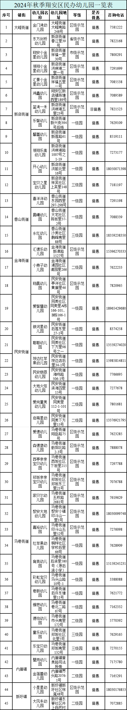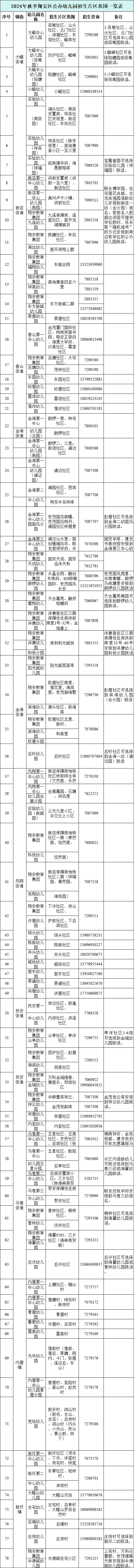 2024年秋季翔安區(qū)公辦幼兒園招生片區(qū)范圍一覽表
