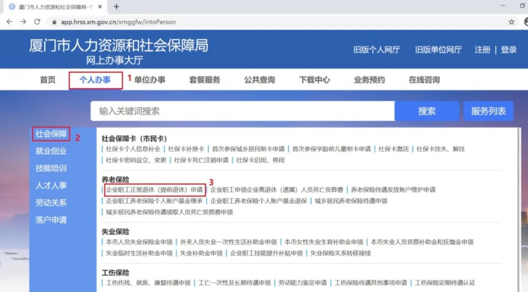 網(wǎng)上辦理:廈門人社官網(wǎng)